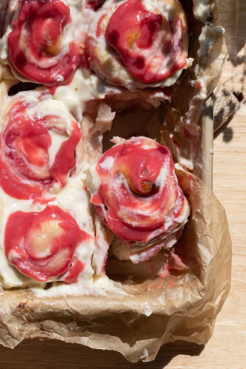 light and fluffy brioche heart donuts stuffed with a raspberry cheesecake filling, perfect for valentine’s day.