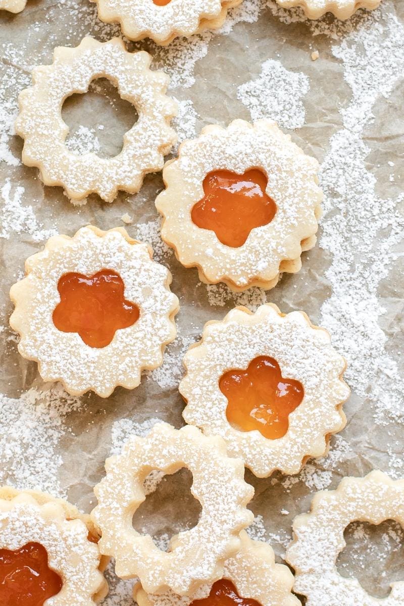 A lot of linzer cookie recipes yield a lot of cookies – but we’re all about small batch over here! This recipe yields 16 sandwich cookies which is perfect for a small event, or keeping in your fridge to snack on during the week. If you need a larger batch of linzer cookies you can double or triple the recipe as needed. I do even more strongly recommend using grams to measure if you are scaling the recipe for the best results!