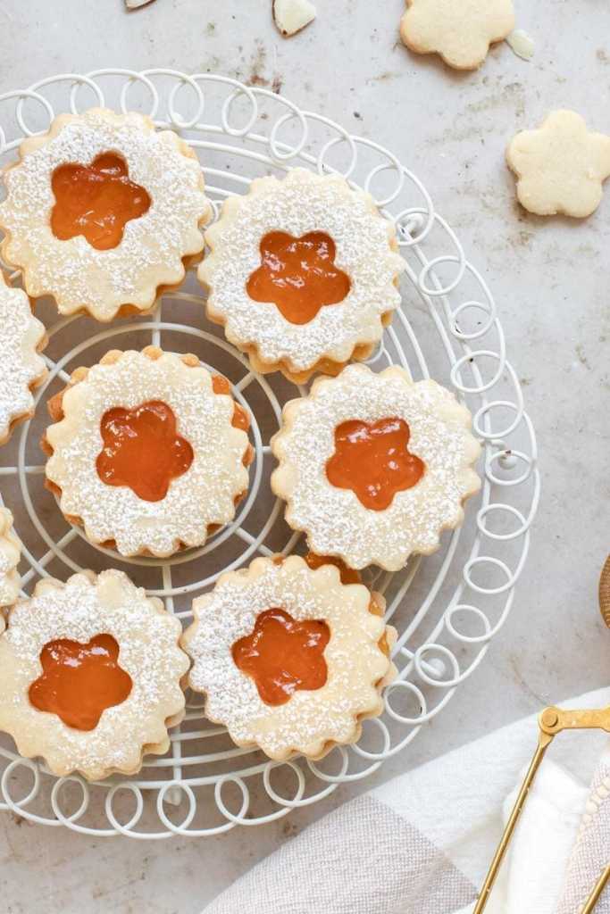 If you’re looking for some adorable cookies for spring, please look no further. We’re stamping out a little flower in the center of these linzer cookies, making them not only delicious but pretty to look at as well! These cookies are made with some almond flour along with almond extract and are filled with apricot jam. Apricot and almond are such a lovely pairing and make for a nice refreshing treat.