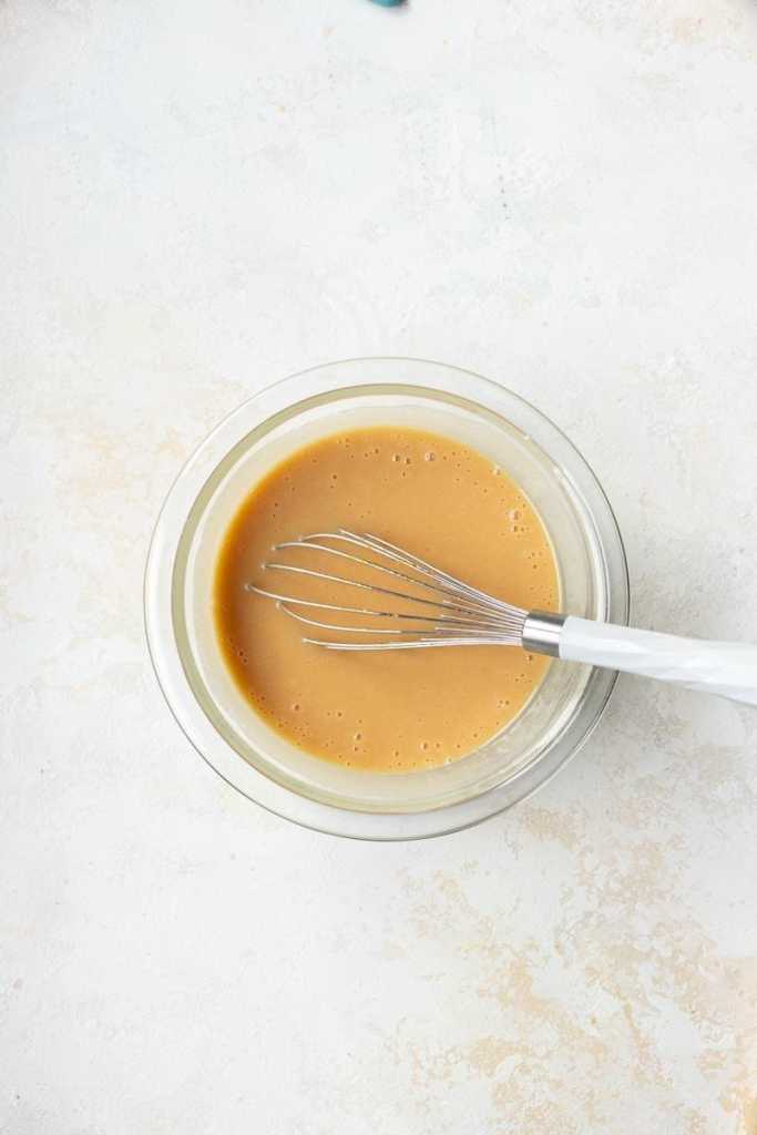 - Immediately add in the butter and whisk until the butter has melted and the mixture is smooth.
