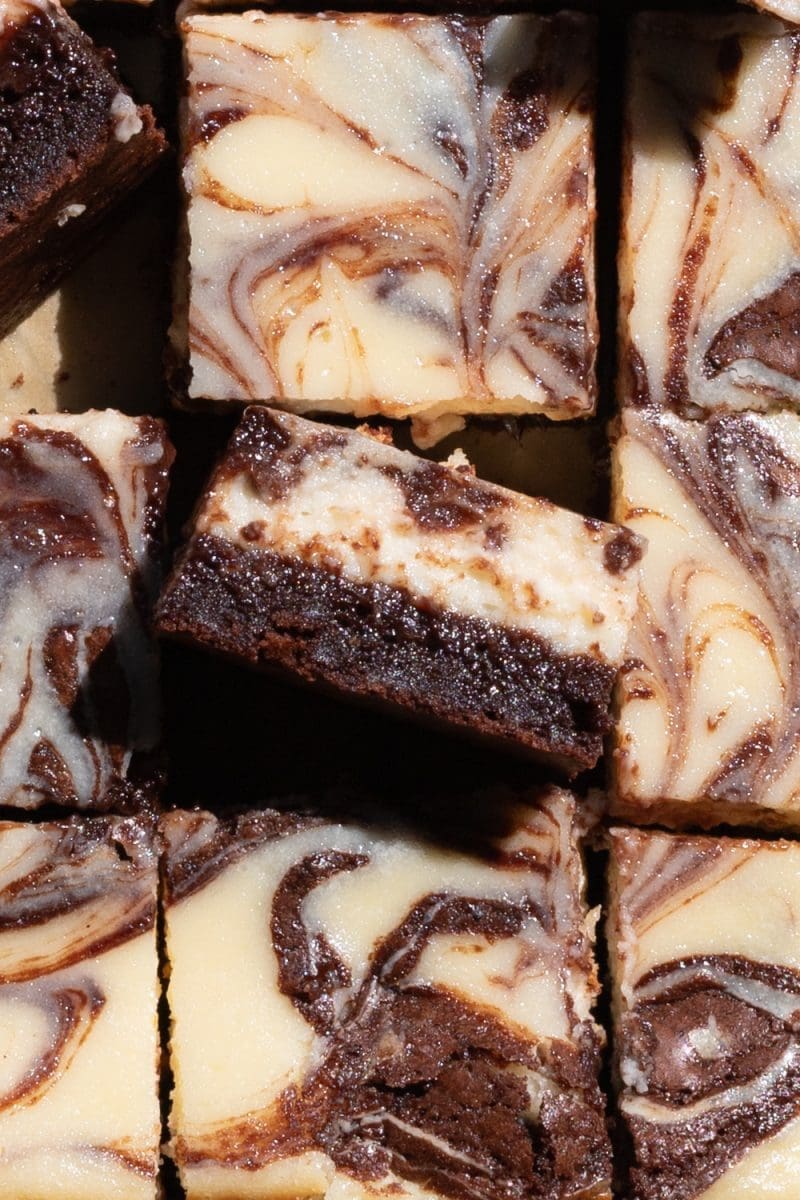 - They’re swirled with cheesecake batter – not just a cream cheese mixture, there’s a full on cheesecake in these brownies.