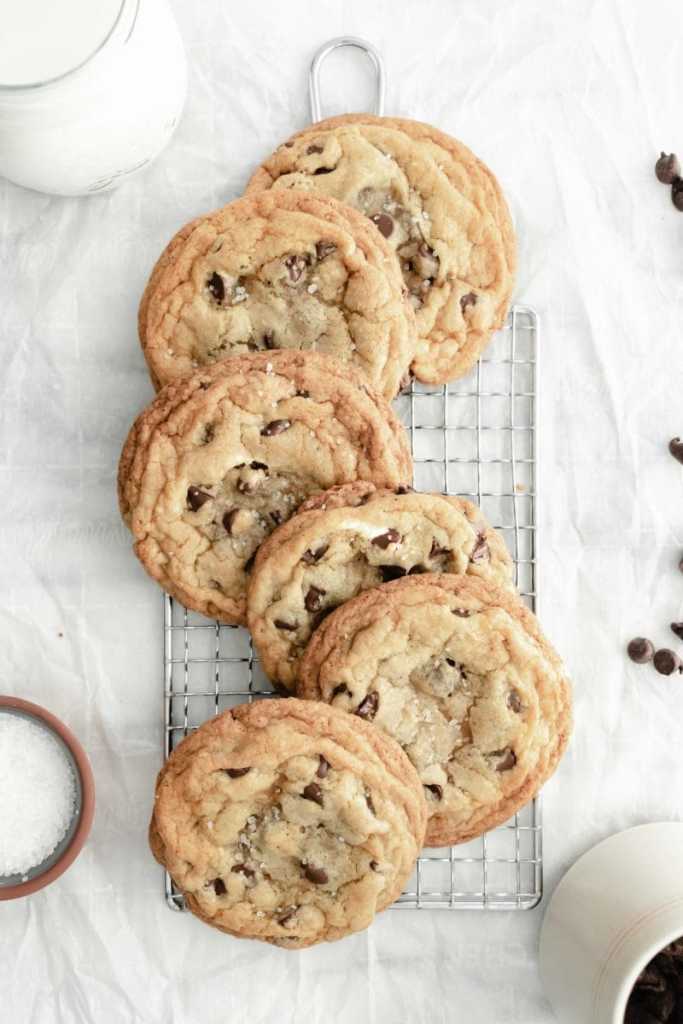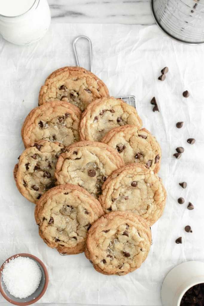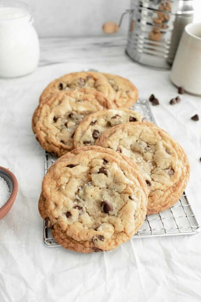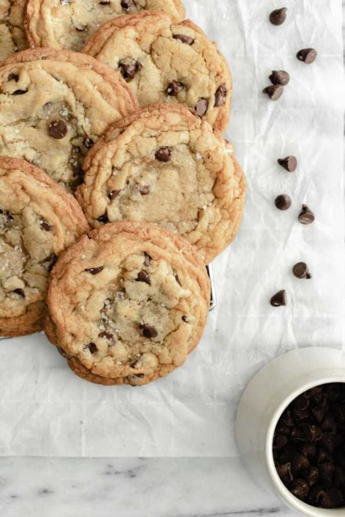 Does the internet really need another chocolate chip cookie recipe? I think so! There are thousands of chocolate chip cookie recipes out there, but they all serve different audiences. You have the soft and chewy, the soft and crispy, the thin and crispy, the ultra thick and chewy. Today I have for you what I deem to be the ~perfect~ chocolate chip cookie, with crispy edges and a soft and chewy center. These chocolate chip cookies are the perfect blend of delicious and easy. They don’t require a mixer and come together in 1 hour.