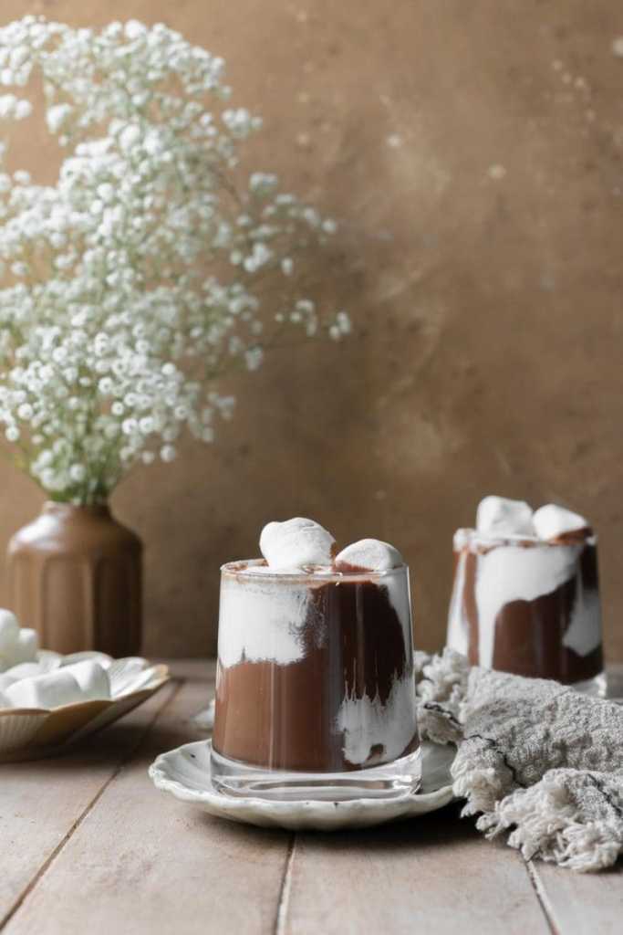 - Bring the mixture to a simmer, then pour between two glasses. Top with marshmallows, then serve and enjoy!
