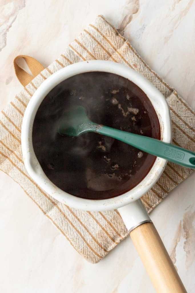 - To a small saucepan, add the water, maple syrup, brown sugar, butter vanilla bakery emulsion, and ground cinnamon. Set the mixture over medium heat, stirring ocasionally.