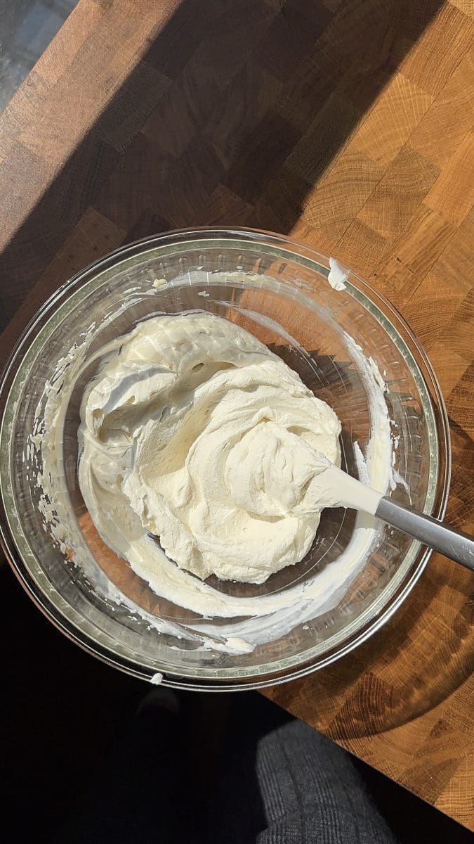 - Mascarpone: for flavor and for thickening the whipped cream.