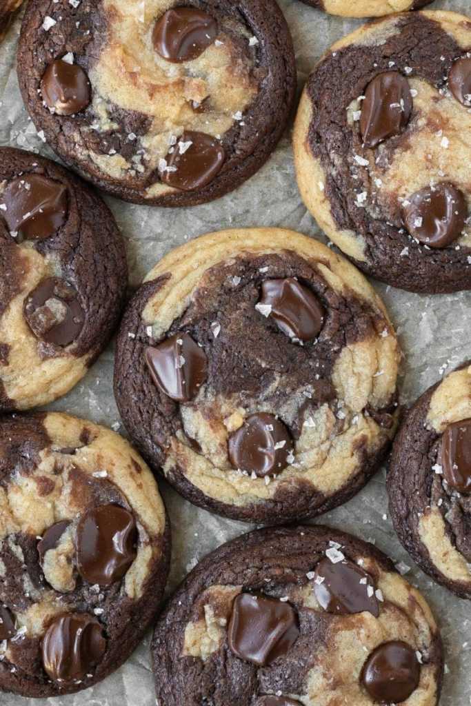 My BEST brown butter chocolate chip cookies marbled with fudge brownie cookies!
