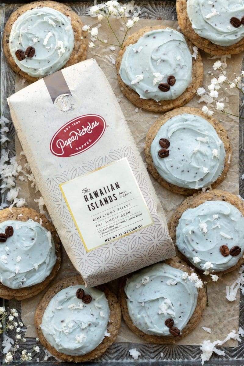 I love PapaNicholas Coffee and am so honored that I get to work with them! I seriously use their coffee beans every single day and am so happy to be able to spread my love of their coffee to you! Today I partnered up with PapaNicholas Coffee for these robin’s egg cookies and used their Hawaiian Islands Espresso which is a light roast blend with Hawaiian Kona coffee, delightfully bright and floral with a smooth finish. I can’t recommend them enough, so please be sure to check them out! You can find their website by clicking here. And if you do end up purchasing their coffee be sure to use code FRESH20 which will get you 20% off any of their coffee!.