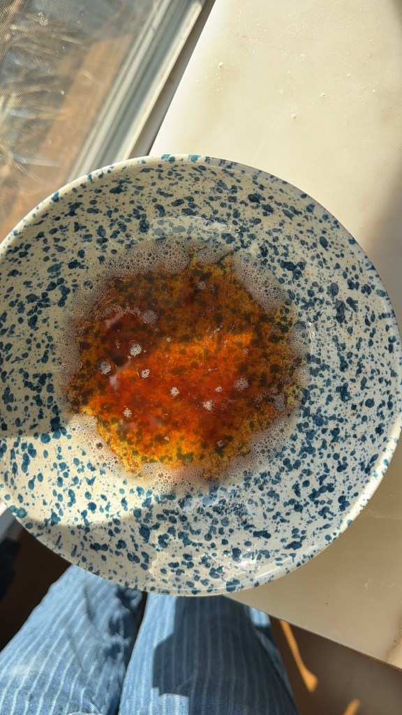 - Transfer the brown butter to a medium sized mixing bowl and set it aside at room temperature to cool down. You should be left with at least 90g of brown butter, if you have a little less, just add in some water until you reach 90g.