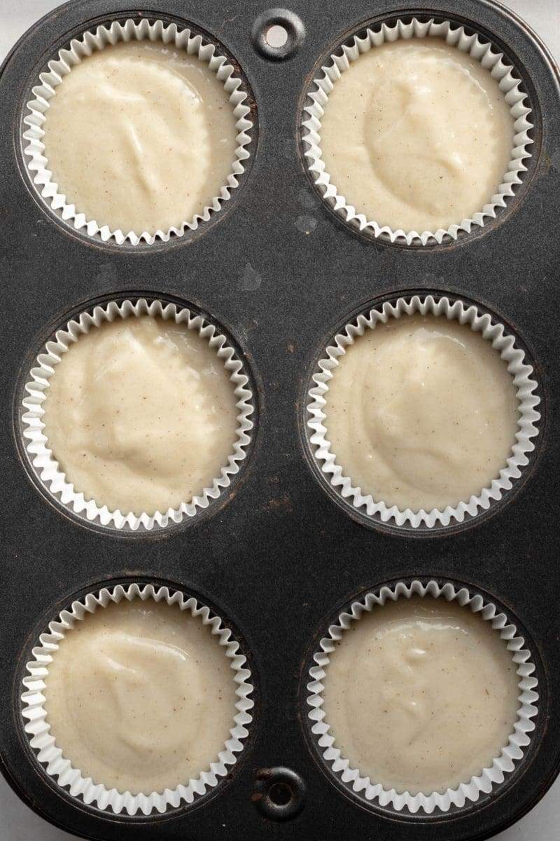 - Preheat the oven to 350°F / 175°C. Line a muffin pan with 6 parchment liners.