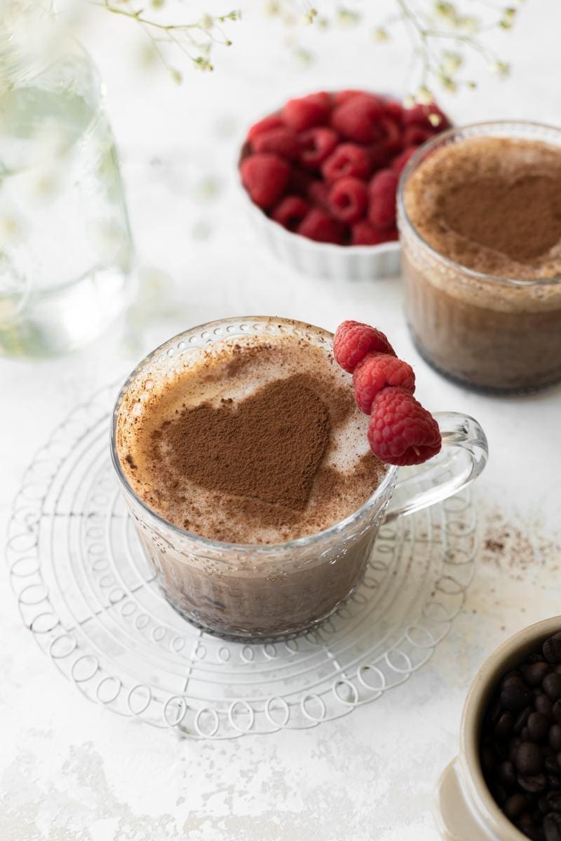 (Optional) dust the top of the mocha with a cocoa powder heart, then serve and enjoy